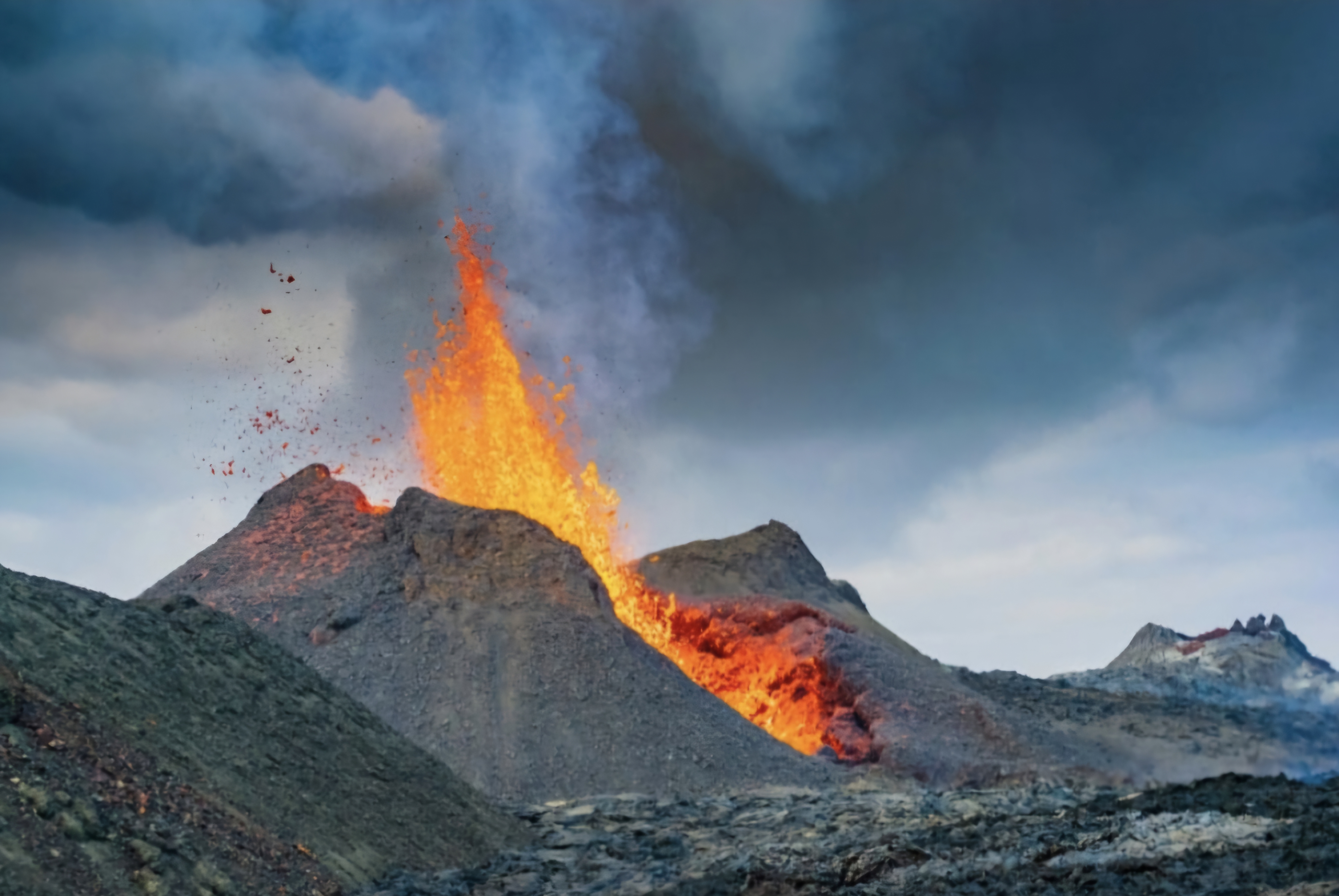솟아오르는 분화구의 불꽃에